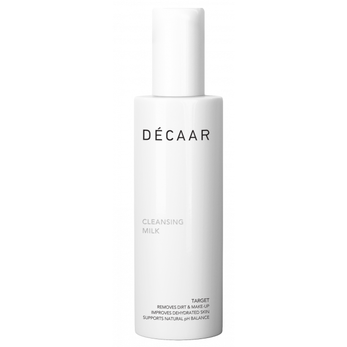 De DÉCAAR Cleansing Milk is een cleanser met een lage pH-waarde. Helpt bij het verwijderen van onzuiverheden en vuiligheid van de huid, waarbij de natuurlijke pH- waarde intact blijft. Daarmee is deze reiniger ideaal voor de gevoelige en droge huid. Alhoewel de Cleansing Milk een zeer milde werking heeft, reinigt het de huid grondig van make-up, zelfs de oogmake-up.